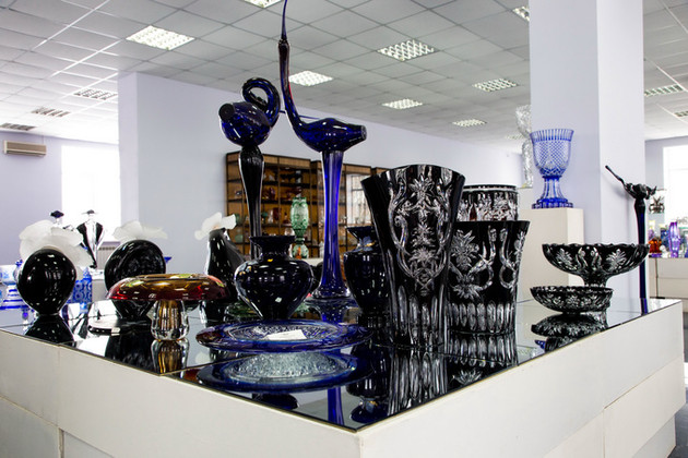 Торговая точка при ГХЗ - небольшое помещение, а ассортимент достоин масштабных выставочных залов. На витринах - изобилие, разнообразие форм и цветов: вот сапфировая ваза, вот красный бокал, тут черно-белый графин и зеленые рюмки-лафитники. Однако цены «кусачие»: красиво, но дорого.
