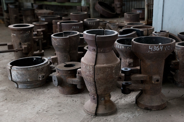 Возле печей сегодня работает бригада Евгения Гусева. Суеты нет, но все происходит очень быстро. Работает команда, как отлаженный механизм, четко зная, кто и что должен делать в конкретный момент. Иначе нельзя: чуть зазеваешься - весь труд насмарку, да и зевать возле огнедышащих печей и горелок опасно.