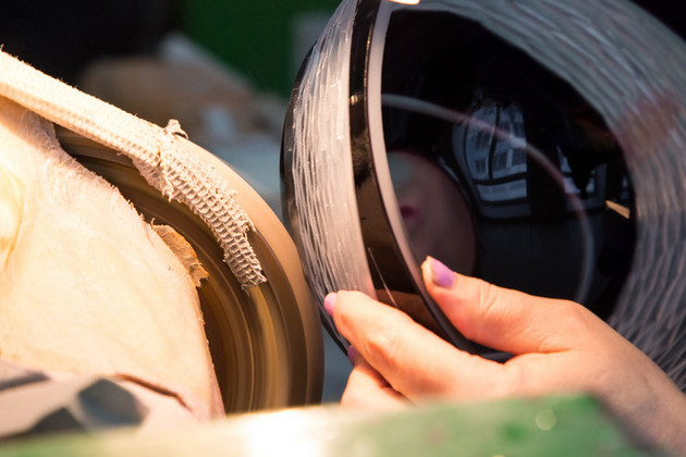 На алмазном участке шумно - работают установленные в ряд станки шлифовщиков. На первый взгляд - конвейер, на самом деле - индивидуальный подход к каждому изделию. Работа шлифовщика тонкая, тут глаз-алмаз нужен: линии должны лечь ровно, не испортить рисунка. Кстати, все работники алмазного участка ГХЗ имеют высший шестой разряд - любую операцию могут сделать от начала до конца. Народ опытный!