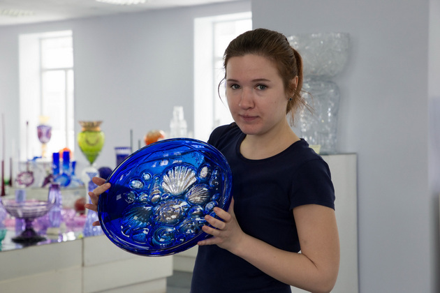 - Мы должны поддерживать репутацию, блюсти бренд, - говорит Ирина Николаевна. - Все знают, что гусевской хрусталь - это качество, это красота, традиции и безопасность. Недаром же мошенники, торгующие простым стеклом, пытаются выдать свой товар за наши изделия. Но простое стекло так блестеть не будет, не заиграет, не зазвучит. Да и вес, например, салатника или графина подскажет покупателю, хрусталь он держит в руках или стеклянную подделку.