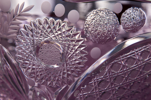Некоторые рожденные на гусевском заводе узоры стали эталоном стеклоделия. Кольца, ромбы, восьмигранники, пирамиды со срезанной верхушкой и рассеченные крестом... Они плотно покрывают гладкую хрустальную поверхность или, напротив, оставляют «воздух», давая нам возможность всмотреться в спокойную гладь элитного стекла.