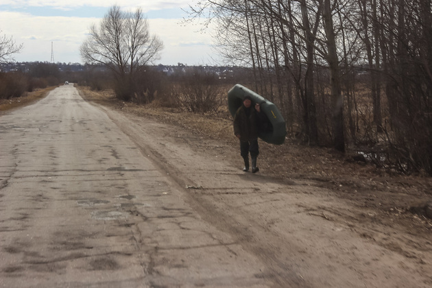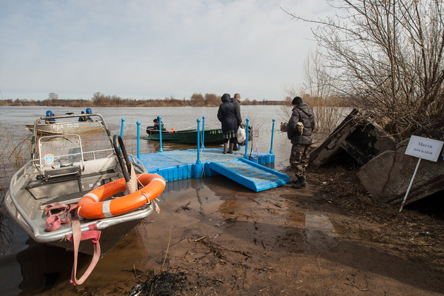 ...Дорога к переправе из центра города заняла на машине несколько минут. На берегу «спешиваемся» и по весенней грязи топаем к лодкам - без резиновых сапог делать здесь нечего. Неужели нельзя заасфальтировать площадку? «Бессмысленно», - отвечает замглавы районной администрации Андрей Рыжиков. Говорит, что вода смоет, и меняет ботиночки на тонкой подошве на резиновые...