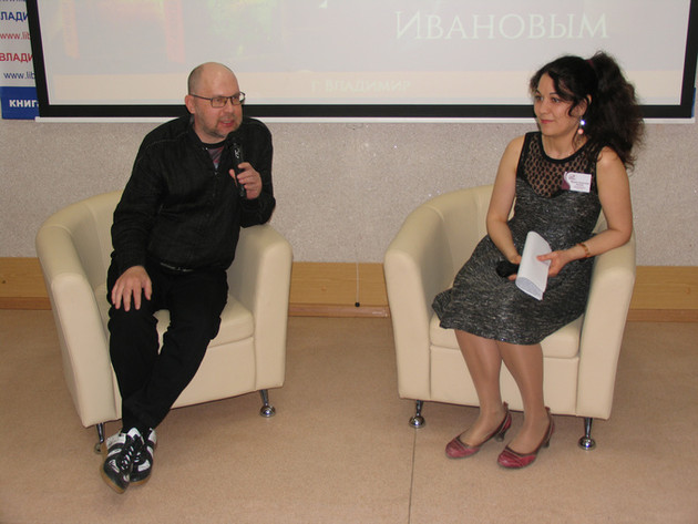 Гвоздем вечера стала встреча с писателем Алексеем Ивановым – автором бестселлеров «Сердце Пармы», «Географ глобус пропил» и других. Как оказалось, писатель имеет тесные связи с владимирской землей. Его мама родом из поселка Степанцево Вязниковского района. А бабушка, у которой Алексей до 15 лет проводил каждое лето, работала в поселковом книжном магазине.