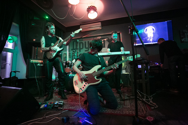 Завершали этот вечер наши земляки из группы Enine. Они представили свой дебютный альбом «The Great Silent», посвященный немому кино. Альбом недавно выпущен издательством ArtBeat Music и уже снискал положительную прессу как в России, так и за рубежом. В программе выступления владимирцев были и композиции с элементами этнической музыки народов севера. На музыкальное путешествие в этом направлении соратников наверняка сподвиг родившийся на Камчатке бас-гитарист, вокалист и шоумен группы Владимир Косыгин. Ребята устроили на сцене настоящее шаманское действо. Завораживающе звучало горловое пение в исполнении Косыгина, добавлял мистической энергетики и настоящий шаманский бубен. Кстати, вокалист Enine в день концерта отмечал день рождения. Лучшим подарком для именинника стало искреннее восхищение публики. Впрочем, торт со свечами тоже был.
