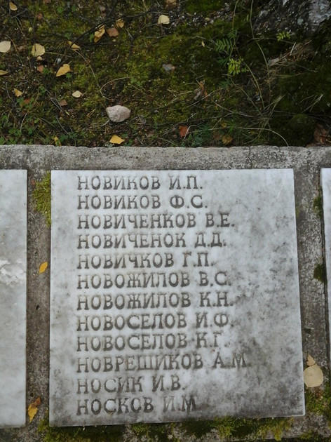 У нее на войне погиб и отец (родной брат моей прабабушки). Федор Семенович Новиков 1906 г.р., уроженец деревни Фёдосово, ездовой пулеметного расчета 731-го стрелкового полка 205-й стрелковой дивизии 27 августа 1944 года подорвался на мине на 23 километре дороги на Сеннозеро от шоссе Лоухи-Кестеньга в Карелии. При подготовке этой статьи мне удалось найти и его последний приют. Останки Федора Семеновича были перенесены из братской могилы на крупнейшее в Карелии воинское кладбище в поселке Садовый, где покоятся более 6 тысяч воинов.