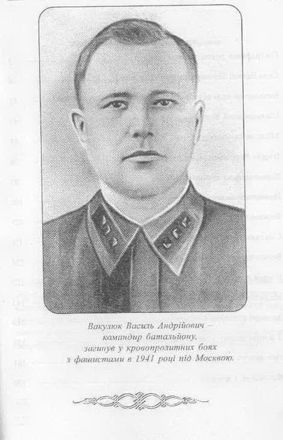 Степан Андреевич Вакулюк был комендантом штаба Волховского фронта и умер в госпитале №4063 15 мая 1944 года. Госпиталь этот находился в усадьбе Воронцовых Андреевское – в Петушинском районе Владимирской области. Благодаря руководителю историко-краеведческого музея петушинской школы №17 Галине Саломатиной, которая вот уже 30 с лишним лет ухаживает за госпитальным захоронением в деревне Рощино, нашлась и могила Степана Андреевича.