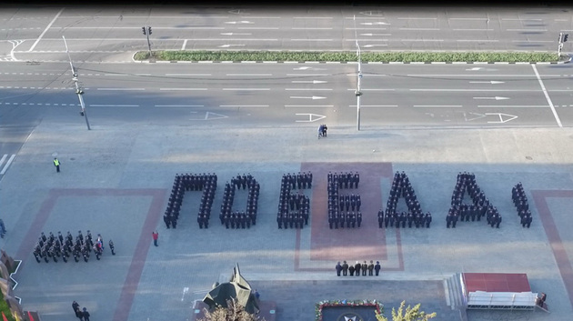 8 мая во Владимире на площади Победы 300 курсантов ВЮИ ФСИН России выстроились в виде слова «Победа». При этом они исполнили куплет песни «День Победы».