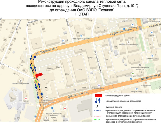 В связи с реконструкцией тепловых сетей промышленной котельной ООО «ТКС», обслуживающей ОАО ВЗПО «Техника», движение всех видов транспорта по Студеной горе на участке от ул. Дворянской до ул. Гражданской будет ограничено.