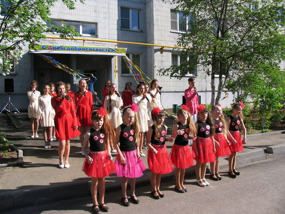 Праздник продолжился концертом творческих коллективов, в которых участвуют жители дома. На благоустроенной детской площадке взрослые организовали игры для ребятишек. У одного из подъездов развернулась выставка картин Кирилла Ведерникова – художника, живущего в этом доме. Рядом раздавались детские книги и поэтические сборники. Чай с пирогами тоже был. Были и благодарственные грамоты активистам от районной администрации. И приветственные слова от гостей из областного центра.