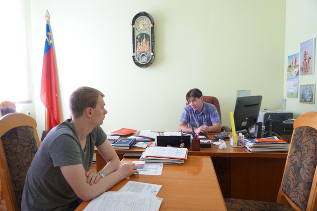 А в дверях новый посетитель - детдомовец Владислав Цвелев. Уполномоченный помогает сироте получить полагающуюся по закону квартиру. Они обмениваются новостями, и мы едем по последнему на сегодня адресу. По пути обсуждаем пришедшие дурные вести: старшеклассник умер на военных сборах; малыш погиб, вылетев из окна на москитной сетке...