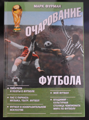 Это уже не первое обращение Марка Фурмана к футбольной теме. Новое издание автор существенно переработал и расширил. Так что в предисловии знаменитый музыкант, народный артист РФ, посол чемпионата мира по футболу Денис Мацуев назвал книгу Марка Фурмана «своеобразным интеллектуальным звеном между самой популярной в мире игрой и ее отражением в культурной жизни общества».«Книга Марка Фурмана «Очарование футбола» - это культурная энциклопедия о великой игре, которая отражает и нашу с вами любовь к футболу» - написал также Мацуев.Книга, созданная на документальной основе, состоит из нескольких разделов, в которых автор делится любовью к футболу — своей и многих известных людей. В разделе «Их футбол: Писатели и поэты о футболе» автор рассказывает об увлечении футболом отечественных мастеров словесности, представляет их стихи и отрывки из прозаических произведений и делится своим восприятием всего этого. Вот лишь некоторые имена очарованных футболом поэтов и писателей, о которых пишет Марк Фурман: Михаил Луконин, Александр Ткаченко, Евгений Евтушенко, Юрий Олеша, Лев Кассиль, Агния Барто, Роберт Рождественский и еще очень многие.В разделе «Пас с парнаса: музыка, театр, футбол» речь идет о футбольных пристрастиях мастеров музыкальной и театральной сцены: Дмитрия Шостаковича, Матвея Блантера, Владимира Высоцкого, Кирилла Лаврова, Михаила Боярского, Родиона Щедрина, Майи Плисецкой и многих других. Уделено внимание и отражению футбола в изобразительном искусстве.Еще один раздел «Мой футбол» составлен из воспоминаний и впечатлений самого Марка Фурмана, страстного болельщика еще с послевоенных лет. Кстати, книга богато иллюстрирована. О том, насколько заразительна любовь Марка Айзиковича к футболу, показала и презентация книги. На ней выступили те, кто, по их признанию, увлекся футболом уже в солидном возрасте, общаясь с Марком Фурманом — художник Михаил Белан (оформивший и это издание) и доктор филологических наук, профессор Виктор Малыгин. Например, профессор Малыгин, считавший себя очень «ленивым» болельщиком, так вдохновился футболом, что написал текст гимна владимирского «Торпедо».Приветствовали выход книги и представители самого футбольного клуба «Торпедо» - директор Дмитрий Вязьмикин и его заместитель Евгений Дурнев. Завершает книгу глава «Владимир — культурная столица чемпионата мира по футболу-2018». Доказательством того, насколько полезно «Очарование футболом», говорит и творческая активность автора книги, которому перевалило за 80 — Марка Айзиковича Фурмана. В библиотеке подготовлена и выставка «Очарование футбола», на которой представлены книжно-иллюстративные материалы об истории игры, знаменитых футбольных клубах и легендарных игроках, о необычных рекордах чемпионатов мира, истории владимирского футбола. Есть на выставке и уникальная футбольная атрибутика от знатоков футбола и преданных болельщиков.