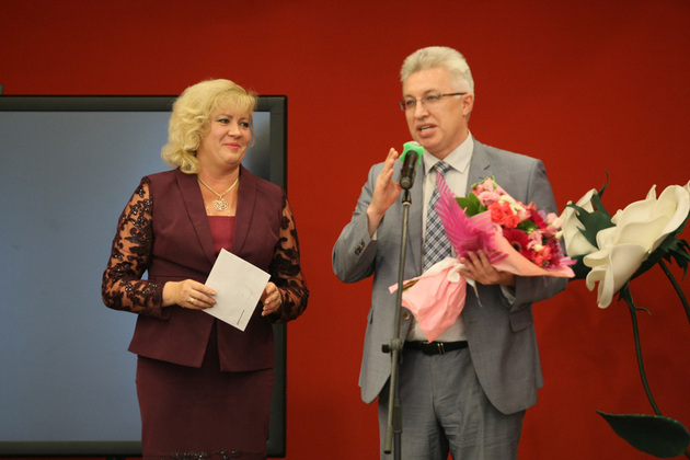 Поздравить именинников приехали вице-губернатор области Михаил Колков, вице-спикер ЗС Вячеслав Картухин, руководство города: Андрей Шохин и Ольга Деева, директор департамента образования АВО Ольга Беляева, представители Российской академии образования.