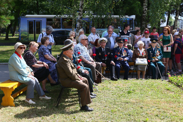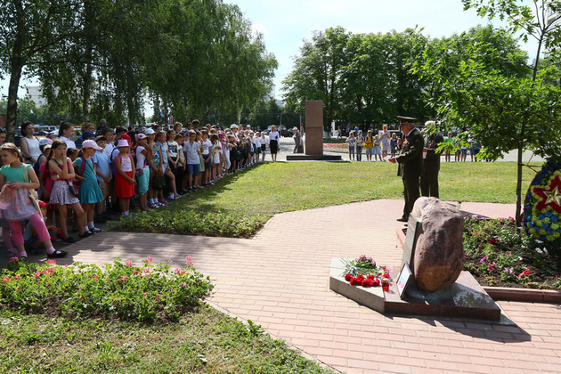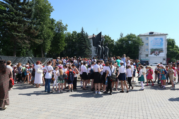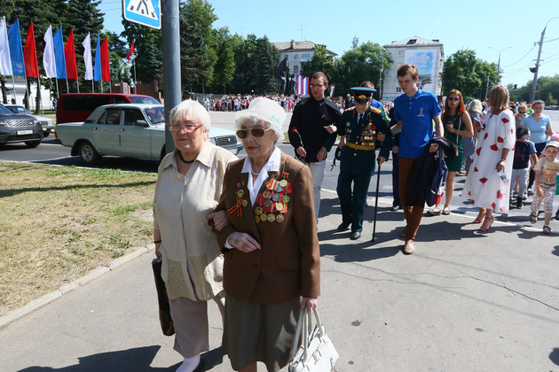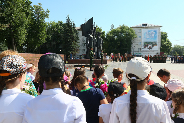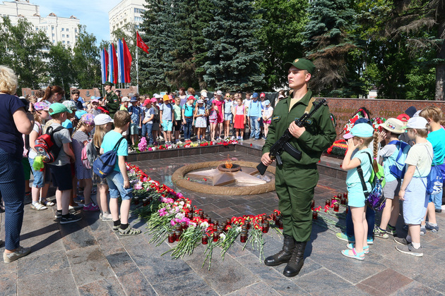 Сначала все построились у мемориала с Вечным огнем. Офицеры из ВЮИ ФСИН России торжественно возложили цветочную гирлянду. Затем торжественным маршем прошли подразделения армии и правоохранительных органов. И, наконец, к мемориалу потоком принесли цветы представители старшего поколения и дети.