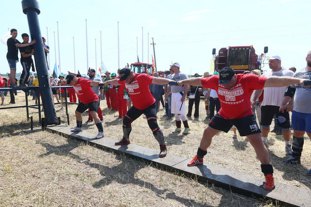 В «Богатырских играх» соревновались шесть команд, остальные участники и гости чемпионата азартно наблюдали за шоу - не всякому под силу спортивные снаряды силового экстрима необычного вида и названия. Например, «коромысло» (у американцев снаряд называется «супер йок») весит 400 кг, а «колодец» - 360 кг.