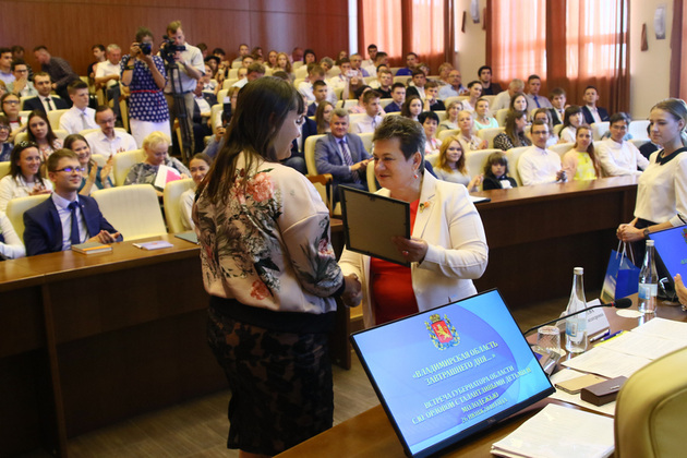 - Давайте, ребята! - призвала Орлова. - Будущее России и Владимирской области только за вами! Вы должны искать, творить и ничего не бояться. Возможно, в этом зале рядом со мной сидит будущий губернатор области. Губернаторами не рождаются, ими становятся.