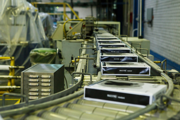 В конце цепи из огромных бумагоделательных машин выкатываются рулоны бумаги разных видов. Гигантские ножи режут их на рулоны поменьше. Еще одни машины из рулонов офисной бумаги нарезают всем нам знакомые пачки, складывают в коробки и отправляют на склад.