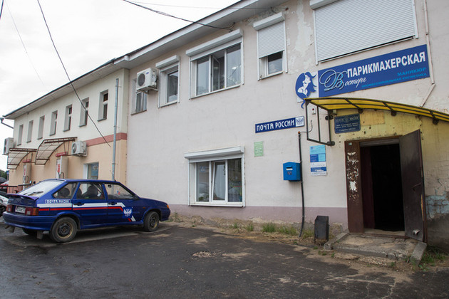 Ставровские почтальоны делят помещение со ставровскими парикмахерами: над крыльцом две вывески в синих тонах. Входишь: парикмахерская - направо, ОПС - налево. У почтовиков две комнаты на правах аренды. На стенах - обои с растительным рисунком, фирменный стиль «Почты России» офисов больших городов не прослеживается.