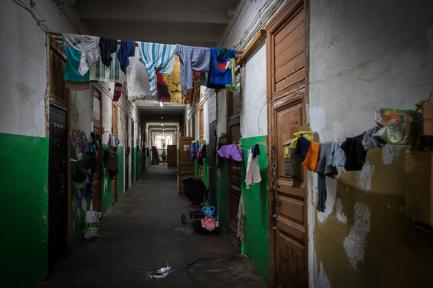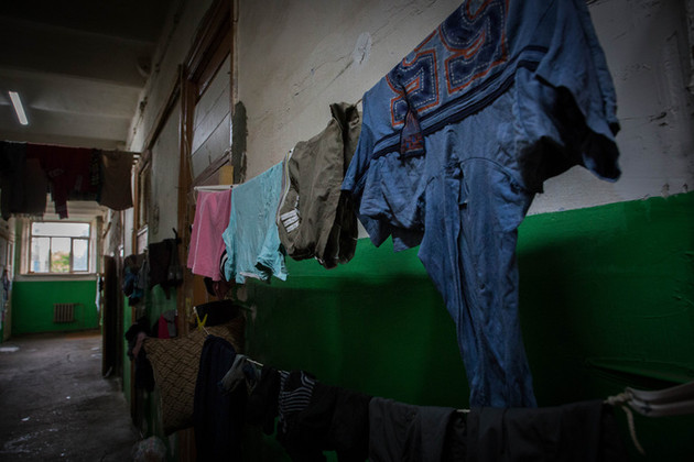 В каждой квартире по ребенку, а то и не по одному. Увидев фотокамеру, дети охотно демонстрируют самые страшные места их обитания. В «сушильной» комнате - пустые оконные проемы, валяются кирпичи, через щели хорошо видна улица. И среди этой разрухи висят веревки с детскими вещами, в углу притулились велосипеды, на разрушенном подоконнике «сушится» обувь.