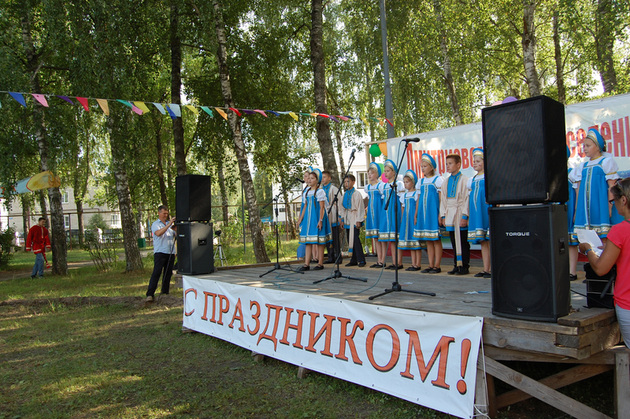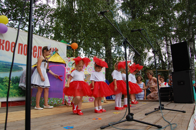 Торжественные речи и признания в любви малой родине чередуются с выступлениями самодеятельных артистов. Яркие костюмы, душевные песни... Особо тепло публика реагирует на номера, подготовленные воспитанниками детского сада и школьниками.
