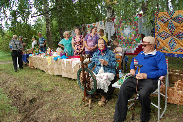 ...До юбилейных торжеств еще пара часов, но на сельских улицах многолюдно. Спешат, переговариваются на ходу взрослые: «Надо успеть все до праздника сделать, пропустить никак нельзя - наши же выступать будут!» Вездесущая ребятня с интересом наблюдает за последними приготовлениями к дню рождения села в парке. Там надувают батут, устанавливают столы с угощением и прилавки с поделками. Организаторы проверяют аппаратуру на сцене. В «Ремесленной слободе» мастера и мастерицы демонстрируют рукоделия: от лоскутного шитья до вместительных корзин из лозы. Любовь Ильинична Орехова выставила свою прялку: «Теперь эдаких нигде не найдешь! Даже в самом Владимире!» Самая красивая площадка - у СПК «ПЗ «Дмитриевы Горы»: по периметру белеют паруса, на сетках и канатах - диковинные рыбы и ракушки, ветер крутит ярко-голубой штурвал, и одетые по форме «матросы» снуют туда-сюда. Им тоже надо успеть до праздника - пропустить никак нельзя: «Наши же выступают!» Пока есть время, решаем пообщаться с главой местной администрации Сергеем Лариным. Ему, конечно, тоже некогда, но в разгар веселья и вовсе ни минутки не выкроить.
