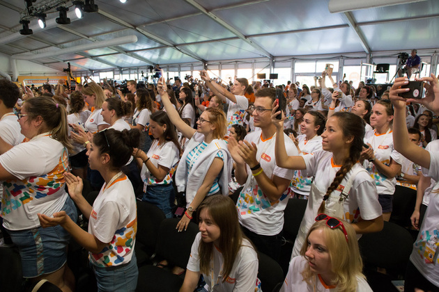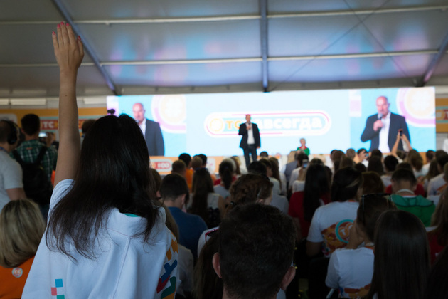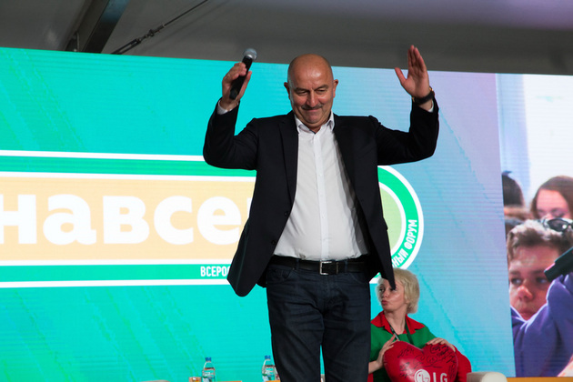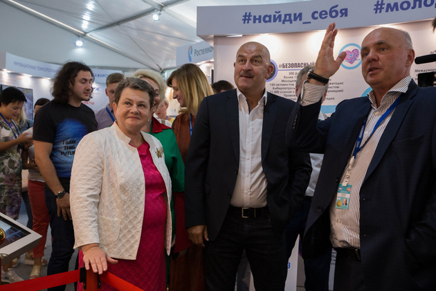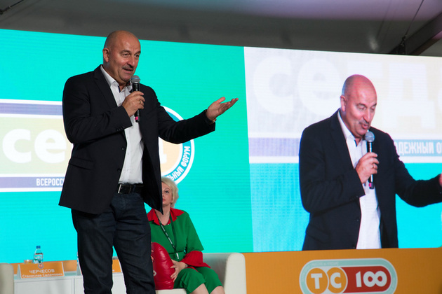 Во время «Диалога на равных» (он в силу тематики добровольческой смены назывался «Доброта и ответственность как важная составляющая побед») Черчесова встретили овацией, но он переадресовал восторги молодежи футболистам сборной:
