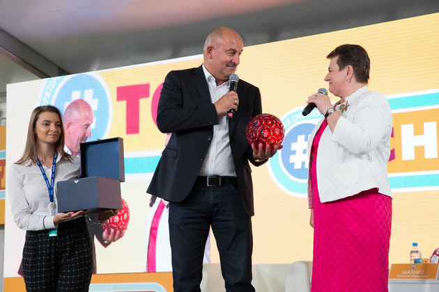 Еще тогда, в Муроме, Орлова заочно вручила Черчесову хрустальный мяч, изготовленный гусевскими мастерами. А тут такой случай — она передала великолепный сувенир самому Станиславу Саламовичу.