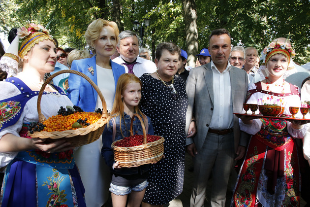 У стенда Вязниковского района француженка не удержалась и станцевала под наигрыши фольклорного ансамбля. А затем там же Светлана Орлова и Ирина Яровая вместе с артистами спели «Гляжу в озера синие»... Радужный одарил высоких гостей корзиной грибов. Ковровский район был оригинален с музыкальным приветствием — возле его стенда прозвучала оперетта. Гороховецкий район презентовал рыбу и богатый овощной ряд, а также предлагал продегустировать фирменную гороховую кашу. В фермерском ряду — помимо традиционных меда, овощей и молока — можно было попробовать уху и шашлык. Примечательно, что Ирина Яровая, традиционно защищающая интересы производителей, даже задержалась там — ради общения с фермерами.