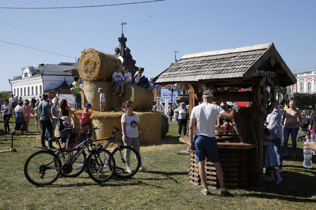 Все достижения областного сельского хозяйства и перерабатывающих предприятий были представлены в оригинально украшенных презентационных шатрах в парке Пушкина и ажурных деревянных шале. Сыр и молоко, овощи и ягоды, мясные и рыбные деликатесы, разнообразная выпечка, грибы, мед, полезные травы — все это посетители выставки могли увидеть, продегустировать и — при желании - приобрести. И в то время, как взрослые отдавали должное дарам владимирского сельского хозяйства, дети вовсю резвились на батутах, огромной надувной горке и фигурно выложенных тюках сена — на этой ярмарке праздник для всех.