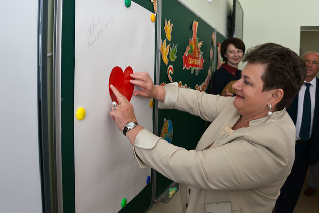Светлана Юрьевна поблагодарила строителей, власти города за хорошую работу. Отметила светлые, теплые тона, которые выбраны и для отделки стен, и для школьной мебели. «Это здорово, - сказала она, - в любую погоду детям здесь будет хорошо».