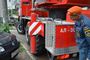 На месте, где автолестница остановилась, пожарный пробует выдвинуть пневматические опоры, а они необходимы для работы спасательного оборудования. Левая даже не смогла выйти полностью - мешает припаркованная легковушка.