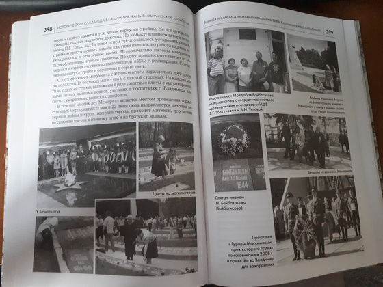 Отдельная глава посвящена воинскому мемориалу, открытому в 1975 году. В ней – список 1542 военнослужащих, умерших от ран во владимирских госпиталях. При подготовке путеводителя были найдены сведения о 232 захороненных на кладбище, чьи имена не были указаны на плитах мемориала.