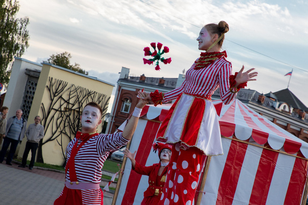 Спектакли будут идти на двух площадках — в академическом театре и театре кукол. На открытии фестиваля вне конкурсной программы блистал Владимирский академический театр драмы — со спектаклем «Владимирская драма из века в век» Владимира Кузнецова, в котором режиссер с артистами легко, но затейливо рассказали об истории создания и становления театра, без которого сейчас просто невозможно представить Владимир. Прежде всего, создатели отдали дань уважения странствующему артисту Ивану Лаврову, в 1848 году убедившему тогдашнего губернатора, что городу нужен театр.