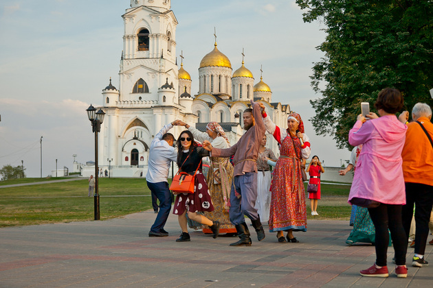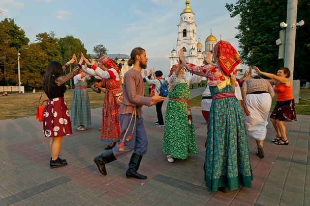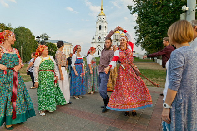 С середины лета каждое воскресенье при поддержке департамента культуры АВО «Владимирская вечора» устраивает открытые «Вечорки на Соборке».