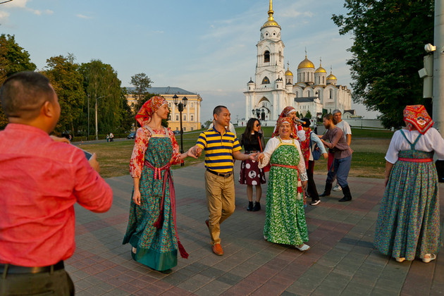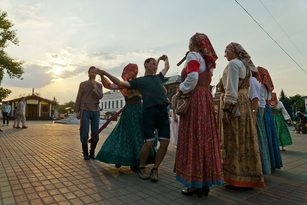 Хороводы перед Успенским собором, можно сказать, уже стали туристическим аттракционом, на который, как будто специально, привозят гостей из Китая целыми автобусами. Туристы все подробно фотографируют и с удовольствием сами участвуют во «флешмобе». Народная культура сметает языковые барьеры…