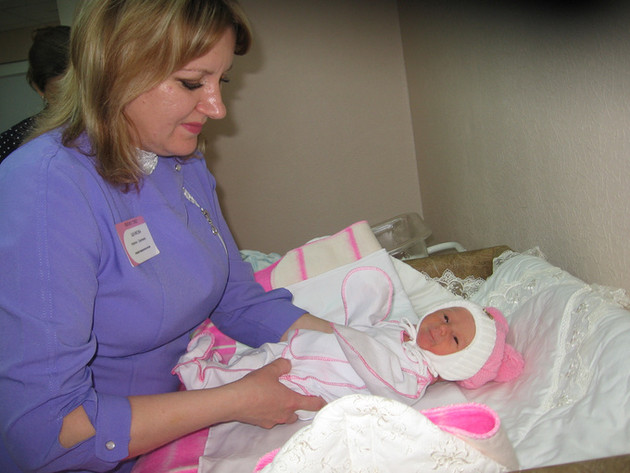 В это время в отдельном помещении идут приготовления к торжественной выписке. Новорожденную Машеньку наряжают в ее первый наряд, закутывают в одеяльце и вручают папе. Вся семья счастлива! И за таким счастьем владимирские пары все чаще приходят в роддом не по одному разу.