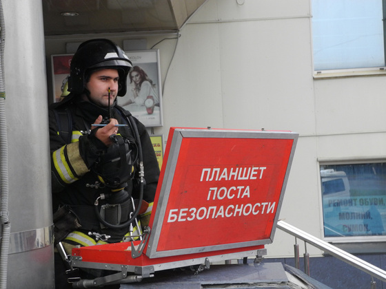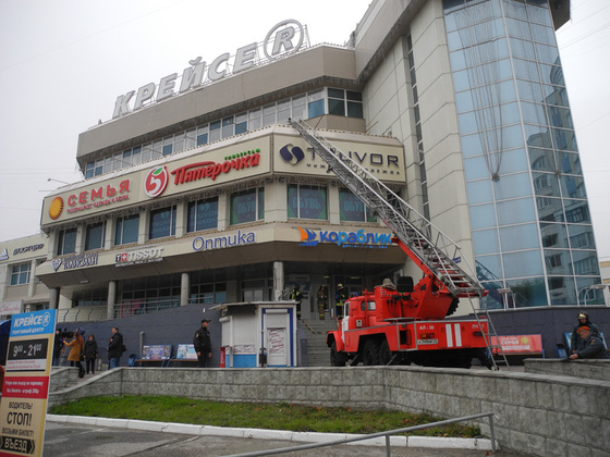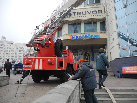 В заключительный день учений отрабатывались действия при пожаре в торговом центре «Крейсер» с эвакуацией 2 тысяч покупателей и персонала.