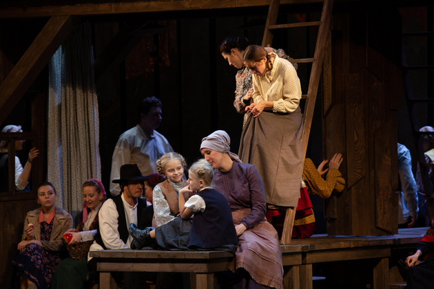 Особо стоит отметить гротескно-комичного мясника в исполнении Владимира Лаптева, выразительный образ свата Менахема — это заслуга Виталия Панасенко и двух крошек, сыгравших роли младших дочек Тевье, Шпринцы и Бейлке, - Катюшу Коленову и дочку актрисы Анны Зайцевой Юлечку. Малышки были чудо как хороши и убедительны. Впрочем, вся эта постановка — как идеально сложившийся пазл. Резюме «ВВ»: смотреть обязательно.