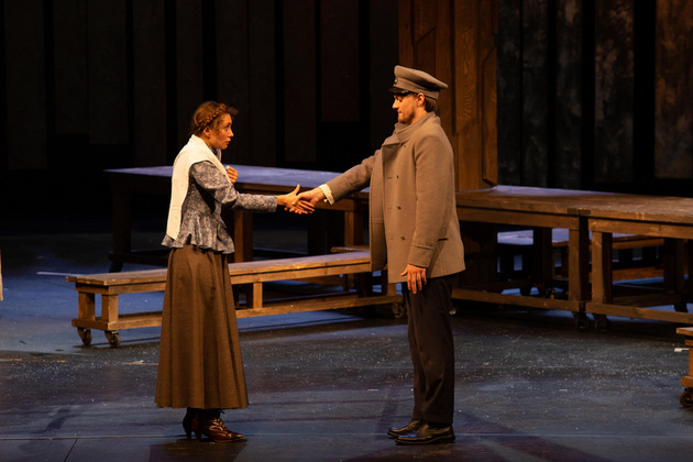 Жену Тевье, Голду, на сцене создала Галина Фатхутдинова. Ее персонаж - стройненький стойкий солдатик с житейской мудростью, отчетливо понимающий, что мягкость мужа - его благословение и его проклятие одновременно. Такие добряки на вершину мира никогда не забираются. Что в этой ситуации делать жене? Правильно — вовремя давать правильные советы, как поступают все хорошие еврейские (да и не только) жены.