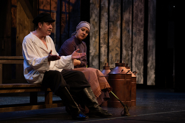 Главный герой спектакля — бедный деревенский молочник Тевье, набожный и правильный человек, который не ропщет на трудную жизнь, любит родных, очень живо рассуждает о священном писании и, оставаясь один, ведет почти дружеские вопросительные разговоры с Богом. Он отец пяти дочерей, три из которых — девицы на выданье. Когда «на горизонте» маячит удачный брак для старшенькой, Цейтл, Тевье рад ее пристроить — дескать, в довольстве будет. Но она (Валерия Емельянова) отказывается от выгодного союза и выходит за бедного, чудаковатого, неувязанного портного (Виктор Мотызлевский), мечтающего о швейной машинке, и робкого — ну просто до смешного. Средненькая, Годл (Анна Лузгина) тоже «отжигает», выбирая студента-революционера, неуемного в азарте толкания речей и по-пионерски оригинального в деле охмурения девушек, которых радостно называет «товарищ» (Денис Чистяков). Младшая, Хава (Наталья Демидова) и вовсе влюбляется в православного. Но мало того: времена в стране смурные — это начало ХХ века, апофеоз усиления антисемитских взглядов, погромов и в конечном итоге высылки евреев из губернии. То есть Тевье только-только смиряется с одним расстройством, на него тут же наваливается повод для нового. Как тут сохранить оптимизм? Веру? Беззлобное отношение к людям? Это ведь бесследно не проходит: когда судьба нас «бьет», мы вопреки поговорке вовсе не крепчаем. Так, как неваляшки, пытаемся вставать... Встанет ли Тевье?