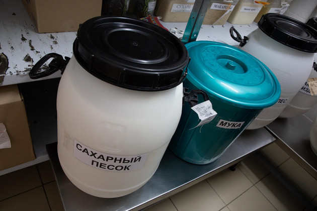 В каждом холодильнике все лежит по отдельности на разных полках, как и положено. В специальном отсеке - склад сухих сыпучих продуктов. На каждой упаковке – маркировка с указанием производителя и срока годности. Проверяю – все свежее. Спрашиваю: