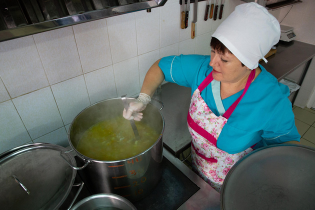 В больших кастрюлях дымится обед. Самые главные здесь - шеф-повар Ирина Лобода (в этом году она получила диплом о высшем образовании по специальности технолог питания) и повар Валентина Афанасьевна - она повышает квалификацию во Владимирском экономико-технологическом колледже. Обе работают с самого открытия детсада.