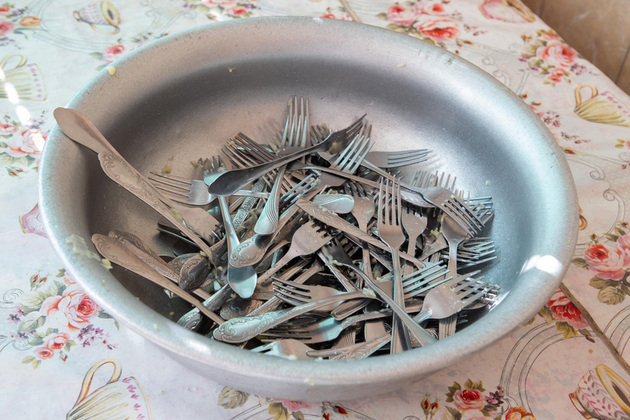 После того как все дети поели, мы глянули, сколько отходов осталось от завтрака. Остатки - лишь пятая часть небольшого ведра. И это хороший результат. Значит, завтрак пришелся детям по вкусу.
