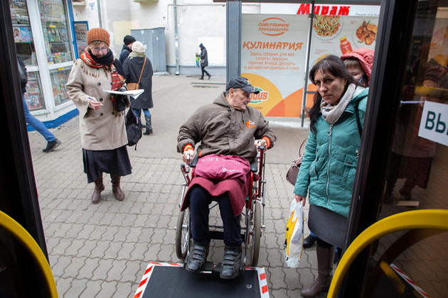 Равнодушие кондукторов и водителей делает невозможной посадку даже в транспорт с пандусом. Человек зависим от помощи других, от их доброты.