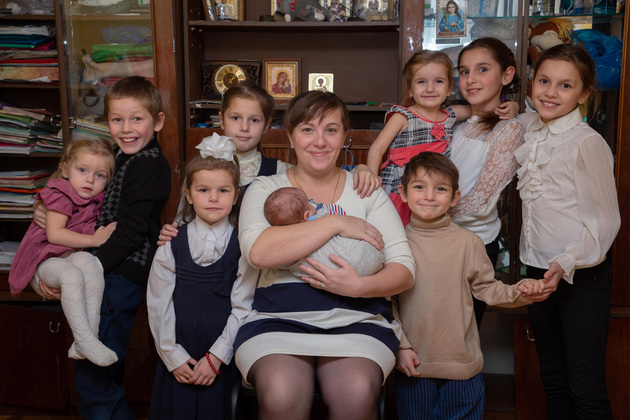 - Каждый раз рождение ребенка мы обсуждаем с мужем, - говорит она. – Предохраняемся, но… Господь дает! Все дети крепкие и здоровые, один лучше другого. Люба и Лиза старшие, 12 и 11 лет. Дальше идут 9-летняя Лена, 8-летний Ваня, 7-летняя Вера, 4-летняя Надя, Серафим и двое младших. Врачи второго роддома уже хорошо меня знают. Каждый раз говорят: «Приходи еще!»