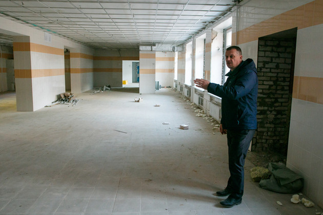 Агарков заводит нас в будущую столовую. Зал огромный, рядом будет кухня, детей перестанут кормить полуфабрикатами, начнут готовить сами.