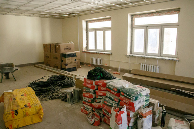 С директором проходим по школьным коридорам и классам. Если честно, ощущения, что работы завершаются, нет.