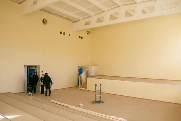 Нам показали обновленные актовый и спортивный залы. Первый почти готов - осталось только систему кондиционирования наладить.