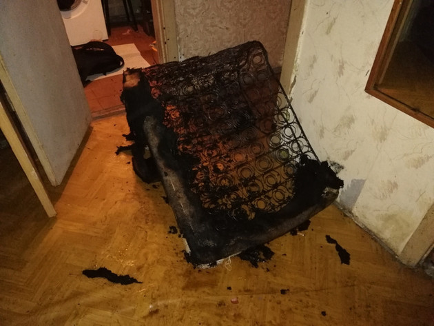 В результате пожара сгорели постельные принадлежности на площади двух квадратных метров. Для тушения пожара были привлечены 12 человек и 4 единиц техники, работало 2 звена газодымозащитной службы. Ликвидировать открытое горение удалось в течение 5-ти минут после прибытия.