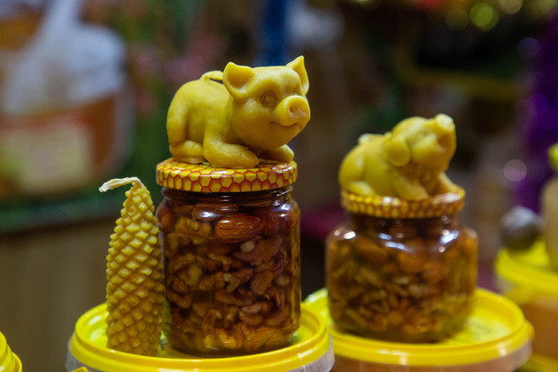 Кроме того, тут много ягод, орехов, меда и другой продукции пчеловодства, соленья и чай. Тех, кто хочет украсить праздничный стол оригинальными сладостями, заинтересуют кедровые конфеты, варенье из сосновых шишек, грецкие орехи в сосновом сиропе, разнообразные пряники.