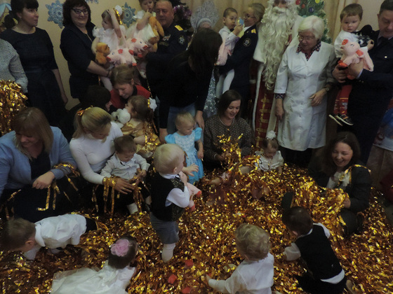 В этот новый год для сотрудники центрального аппарата на свои добровольные пожертвования закупили снегоуборочную машину для детдома, а также сладкие подарки, мягкие игрушки, развивающие конструкторы для его малышей.